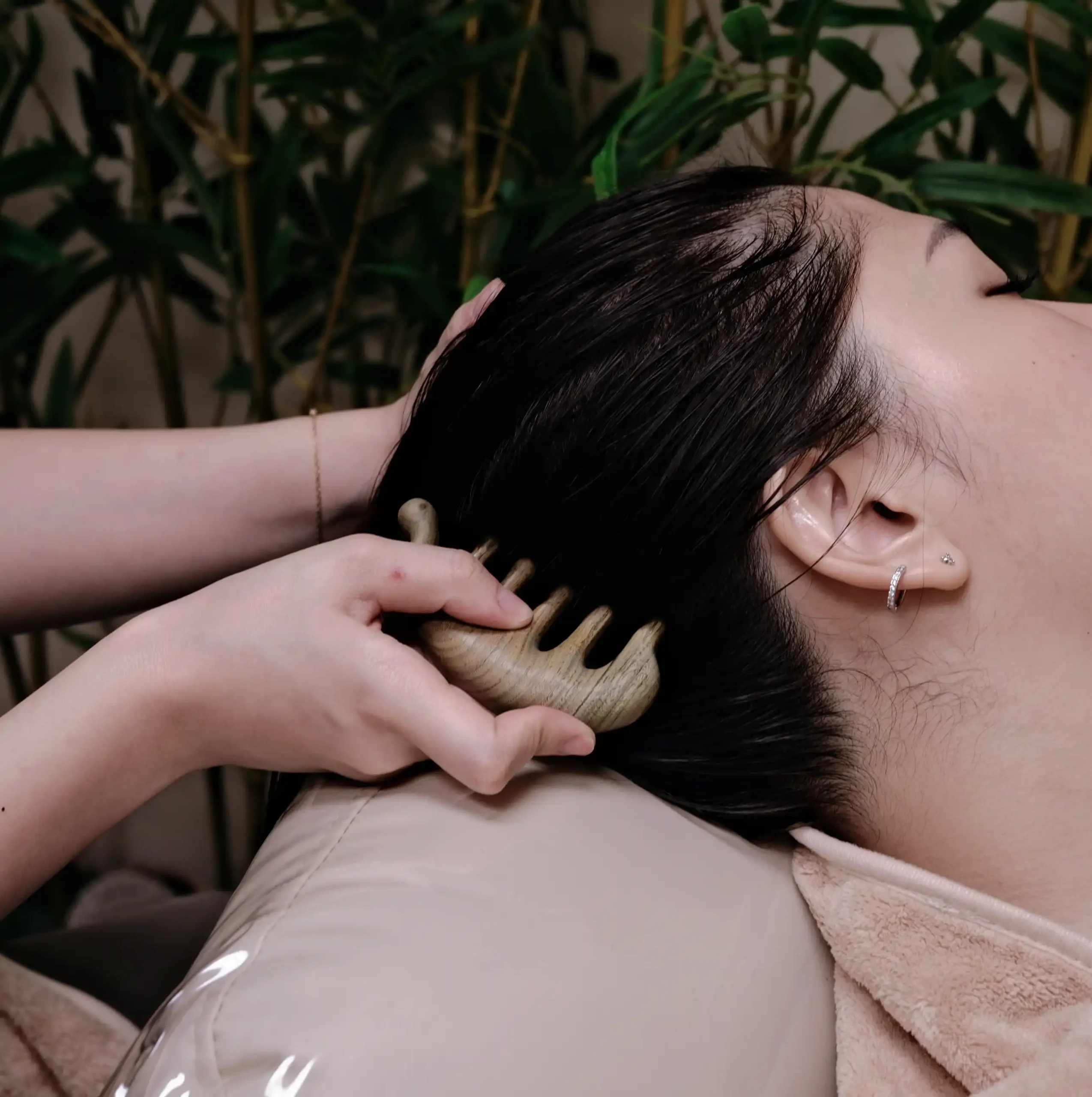 we specialize in customized head spa therapies designed to promote scalp health, support hair growth, and relieve stress. Each treatment blends professional-grade products, gentle exfoliation, nourishing hydration, and therapeutic massage to awaken circulation and rejuvenate both scalp and senses.